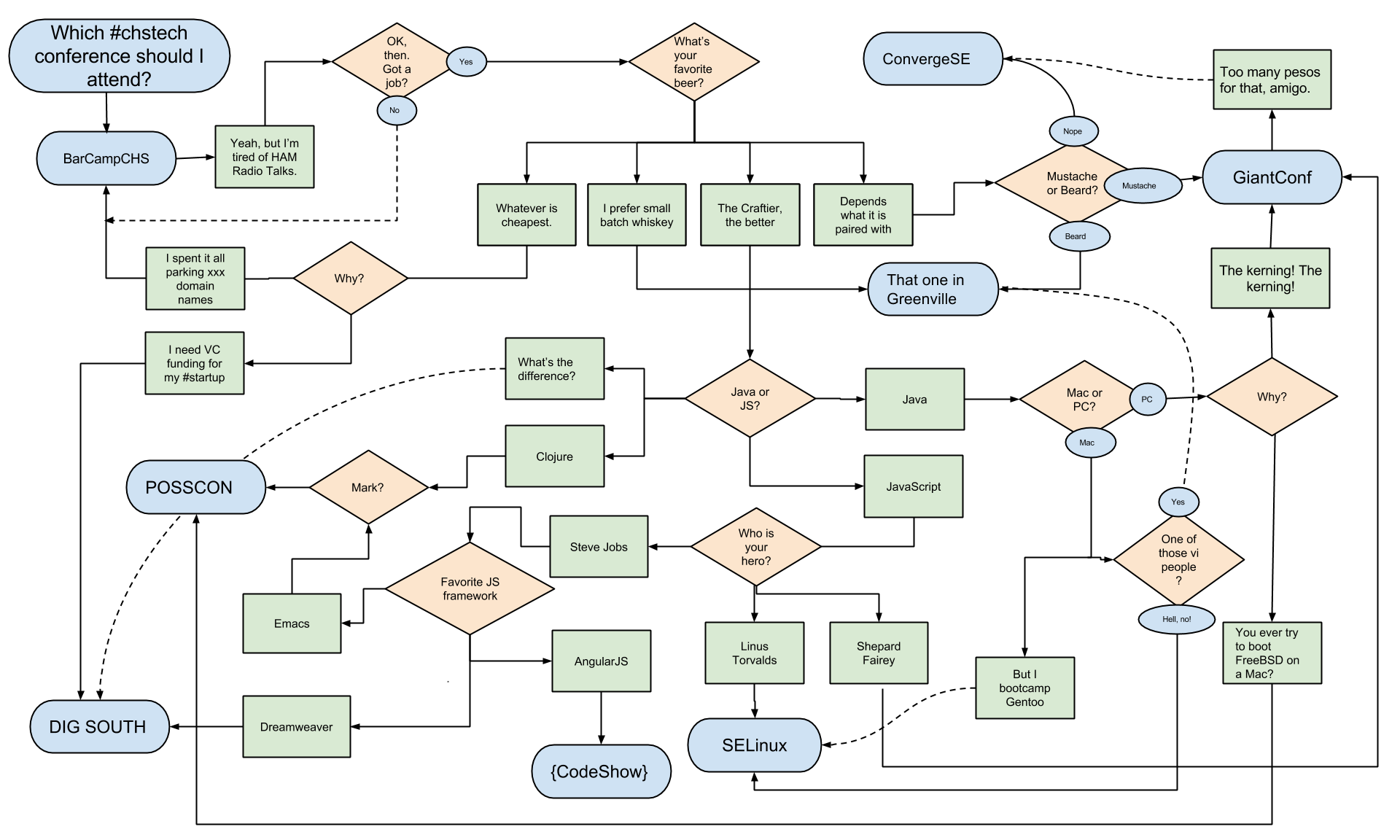 It’s that time of year again. The seas and beaches are warming. The flowers are in bloom. The low hum of projectors will soon be hurling many a brave Power Point against unsuspecting screens and walls. Questions will be asked. Wifi quality will be bad. That’s right. It’s Conference Season. To help guide your choices in this precious time, gentle reader, we are pleased to present this handy flowchart. Click to get the big version. Use it well.